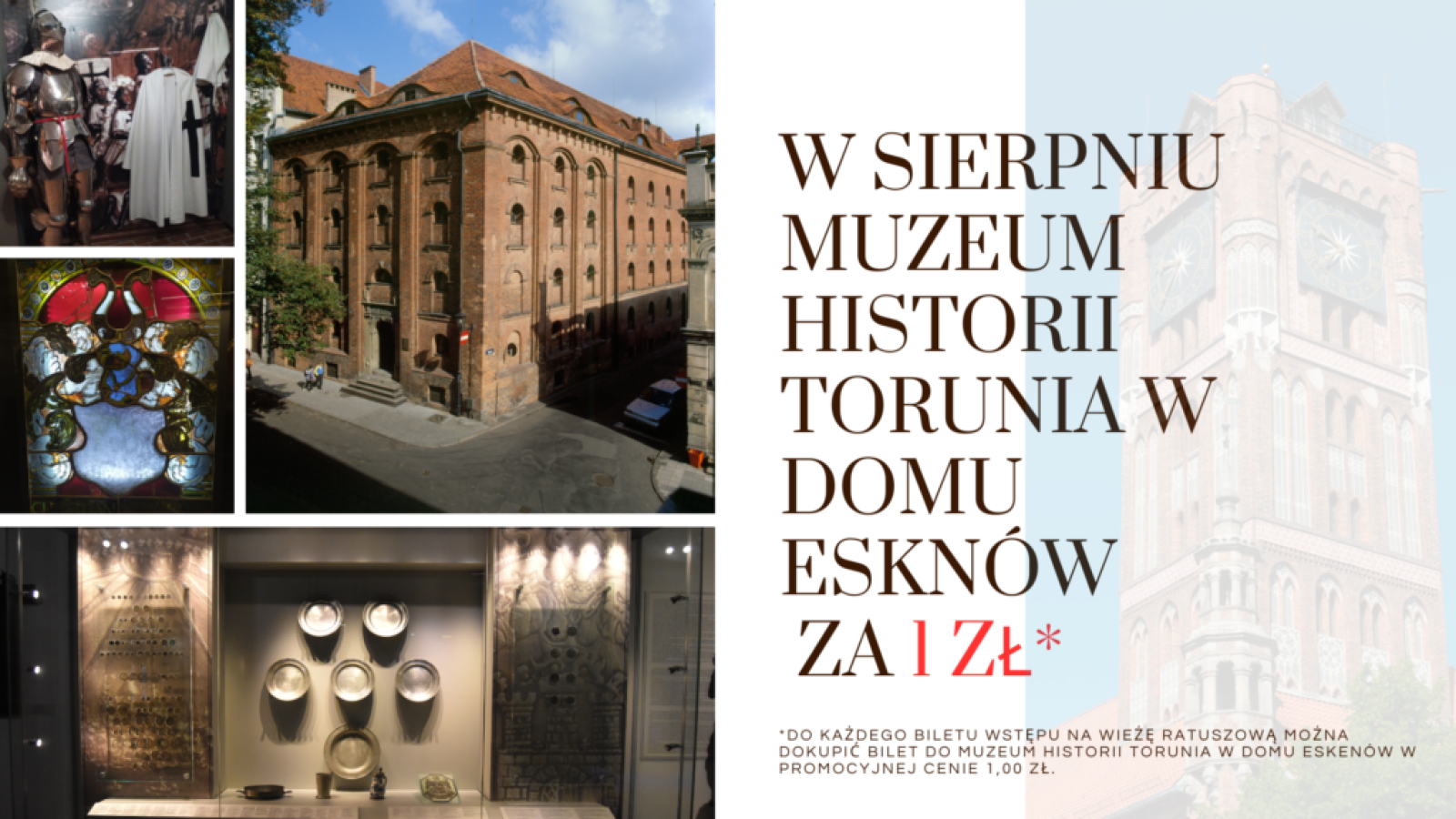 Sierpniowa promocja! Wieża Ratusza Staromiejskiego + Muzeum Historii Torunia w wyjątkowej cenie 1 zł!