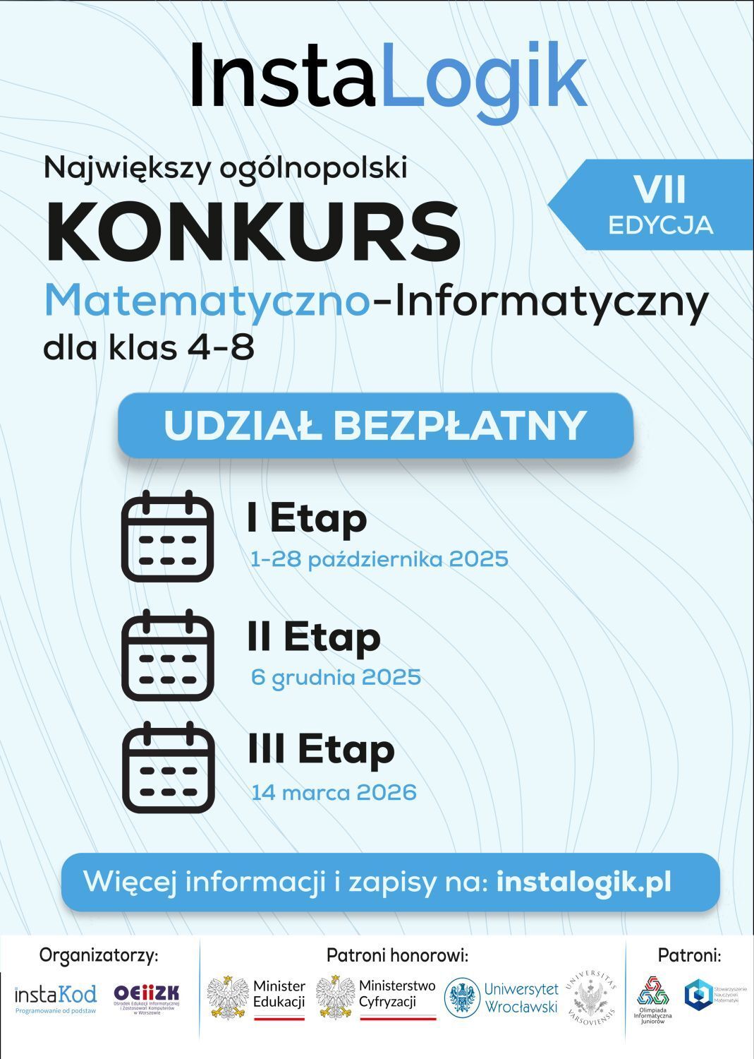 VII edycja konkursu InstaLogik uzyskała patronat honorowy Ministra Edukacji. oraz Ministertwa Cyfryzacji.