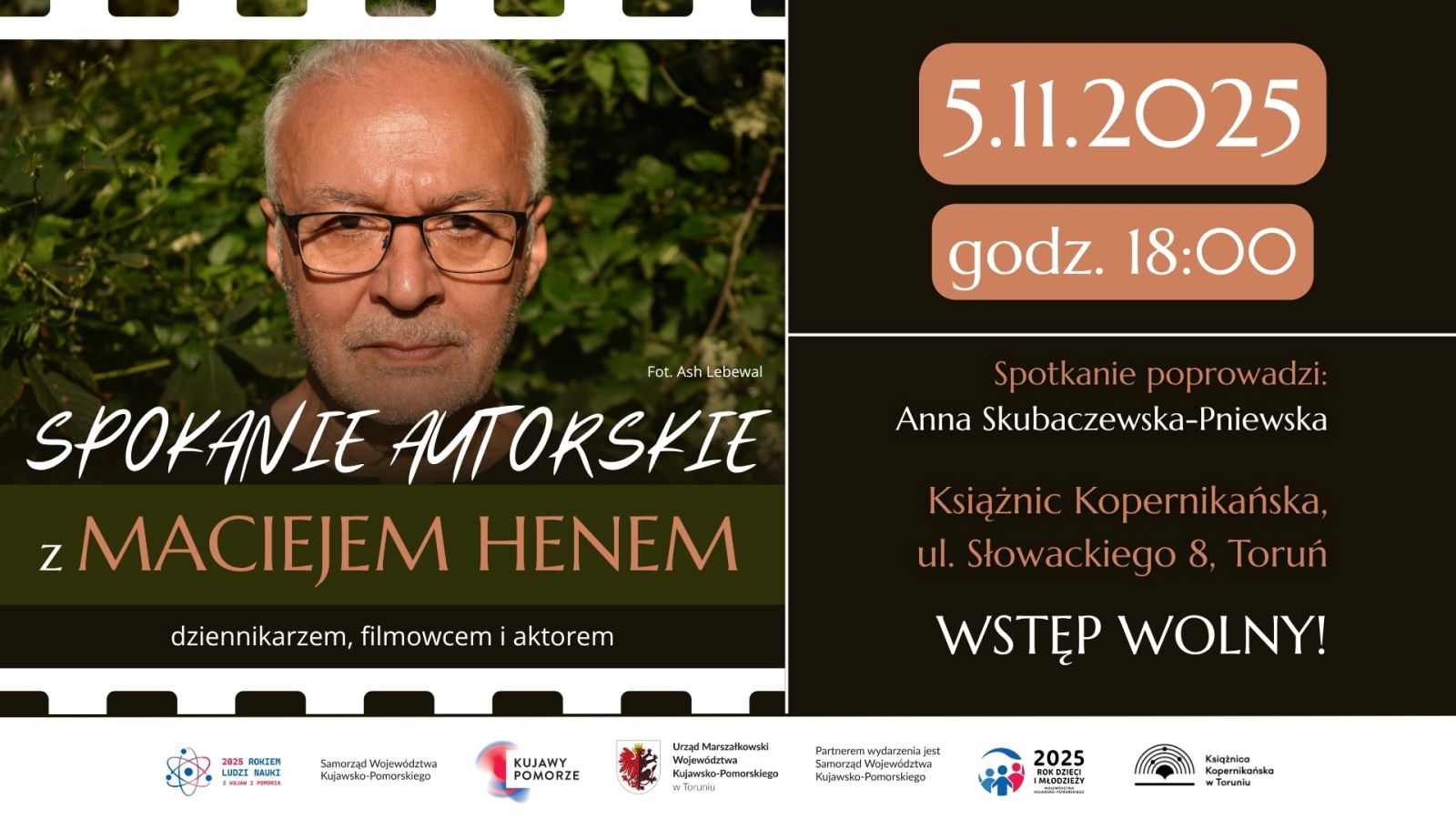 Książnica Kopernikańska w Toruniu zaprasza na spotkanie z Maciejem Henem. Wydarzenie odbędzie się 5 listopada 2025 r. o godz. 18.00, przy ul. Słowackiego 8.