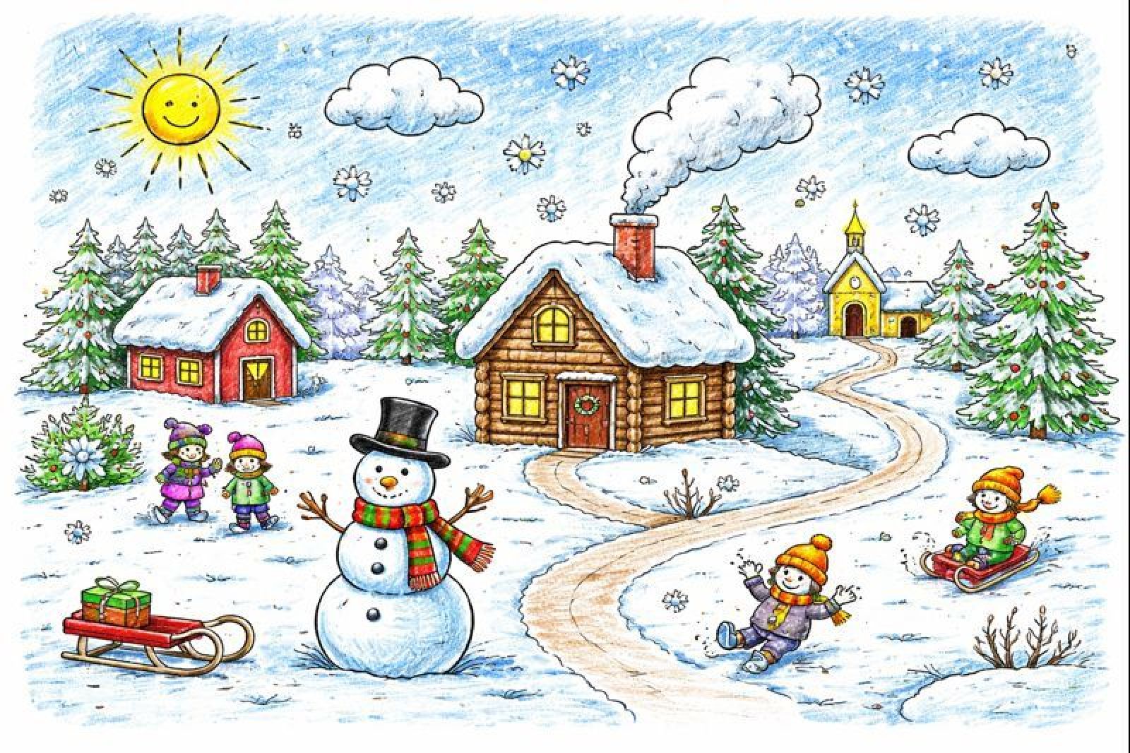 kreatywne zajęcia plastyczne – dzieci stworzą własny, przestrzenny zimowy pejzaż 3D.
