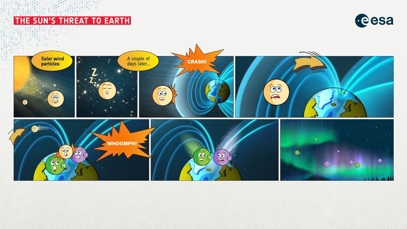Na szczęście nasza planeta posiada potężną tarczę ochronną – magnetosferę, która działa jak parasol chroniący przed tym nieustannym deszczem cząsteczek. Jednak, tak jak podczas bardzo silnej ulewy nawet pod parasolem może zmoknąć nam stopa, tak samo wtedy, gdy wiatr słoneczny staje się wyjątkowo silny, część cząstek potrafi przebić się przez ziemską osłonę.