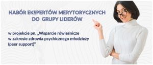 Nabór ekspertów merytorycznych do Grupy Liderów w projekcie pn. „Wsparcie rówieśnicze w zakresie zdrowia psychicznego młodzieży (peer support)”