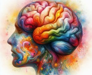 • Artystyczna wizja głowy i mózgu człowieka.