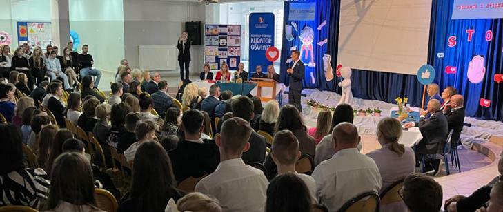 Po konferencji wiceminister Myrcha spotkał się z uczniami Szkoły Podstawowej nr 23 we Włocławku. Przeprowadzone tam zajęcia były jednym z pierwszych wydarzeń w ramach nowego programu edukacyjnego. Jego celem jest zwiększenie świadomości prawnej dzieci i młodzieży, a przede wszystkim pokazanie im, jak rozpoznawać i skutecznie przeciwdziałać mowie nienawiści w sieci.