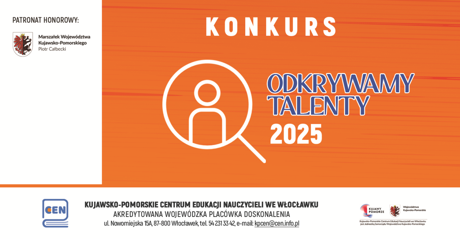 Kujawsko-Pomorskie Centrum Edukacji Nauczycieli we Włocławku zaprasza nauczycieli wszystkich typów szkół i przedszkoli do udziału w kolejnej edycji Konkursu Odkrywamy Talenty 2025.