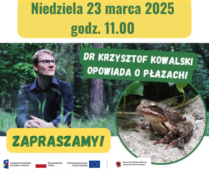 Szkoła Leśna na Barbarce zaprasza na wydarzenie dotyczące płazów. 23 marca 2025 r. o godz. 11.00 w Leśniczówce na Barbarce gość specjalny dr Krzysztof Kowalski przedstawi tajniki życia płazów oraz wyniki swoich badań nad nimi.