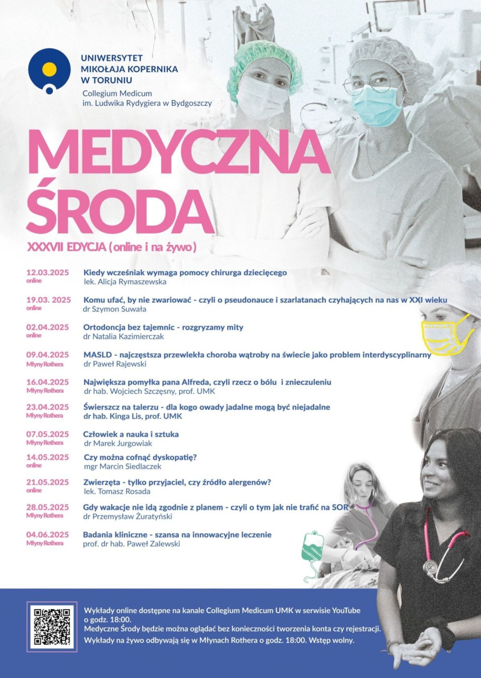 • Plakat Medyczna Środa z Collegium Medicum UMK z harmonogramem wykładów.