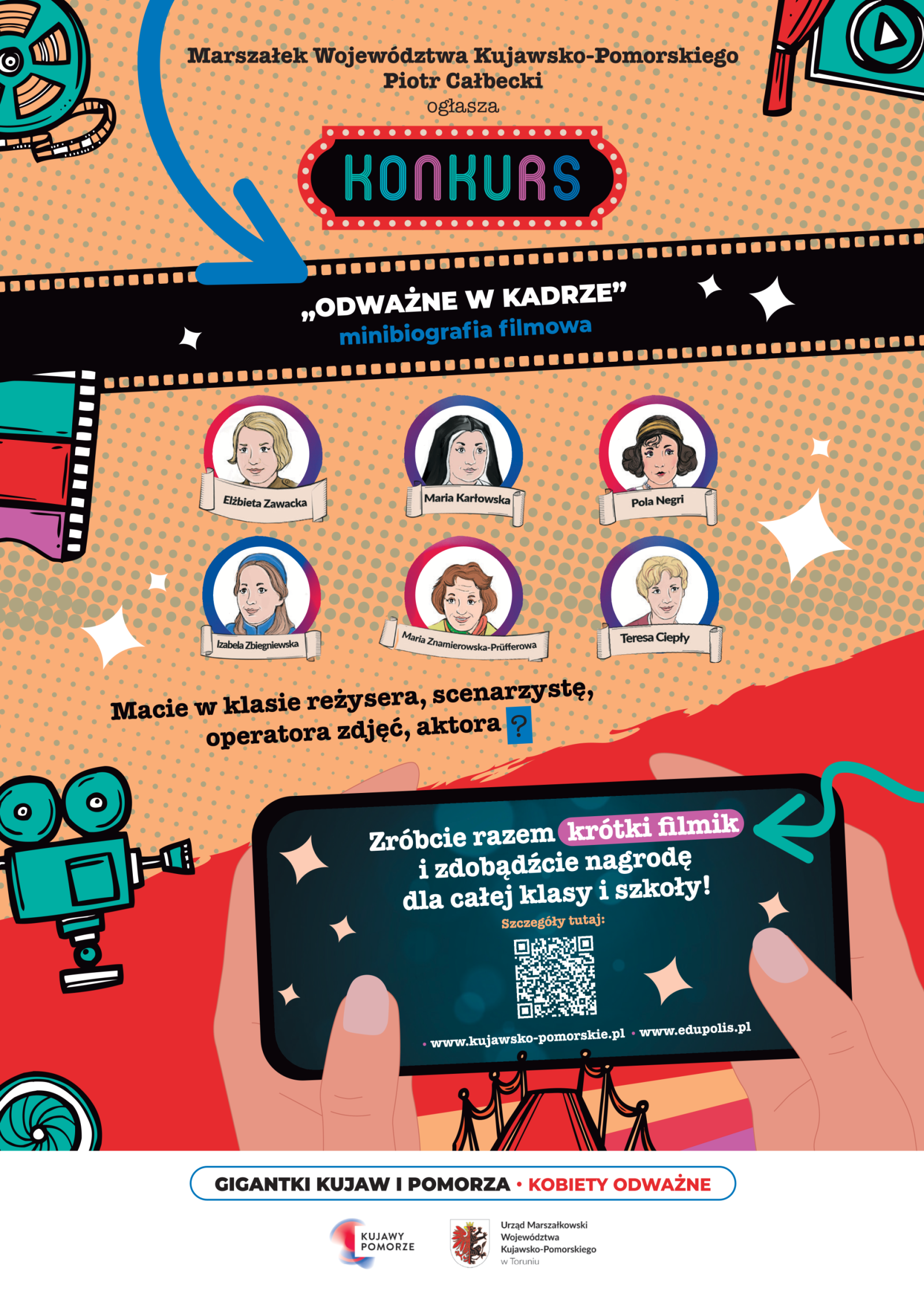 Biblioteka Pedagogiczna im. gen. bryg. prof. Elżbiety Zawackiej w Toruniu, Kujawsko Pomorskie Centrum Edukacji Nauczycieli we Włocławku oraz Urząd Marszałkowski Województwa Kujawsko-Pomorskiego zapraszają do udziału w wojewódzkim konkursie na minibiografię filmową „Odważne w kadrze”.