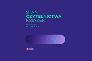 • Logo Biblioteki Narodowej i napis: Stan czytelnictwa książek w Polsce w 2024 roku - 41 %.