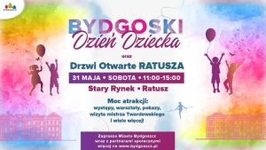 W sobotę, 31 maja w godz. 11-15 zapraszamy na Stary Rynek i do bydgoskiego ratusza całe rodziny, szczególnie najmłodszych. W przeddzień ich święta zaplanowaliśmy moc atrakcji: występy, warsztaty plastyczne i teatralne, gry wielkoformatowe, animacje, pokazy służb mundurowych.