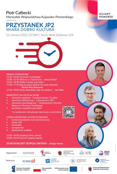 Piotr Całbecki Marszałek Województwa Kujawsko-Pomorskiego zaprasza na PRZYSTANEK JP2 WIARA DOBRO KULTURA 12 czerwca 2025 | ECWM | Toruń, Wola Zamkowa 12A