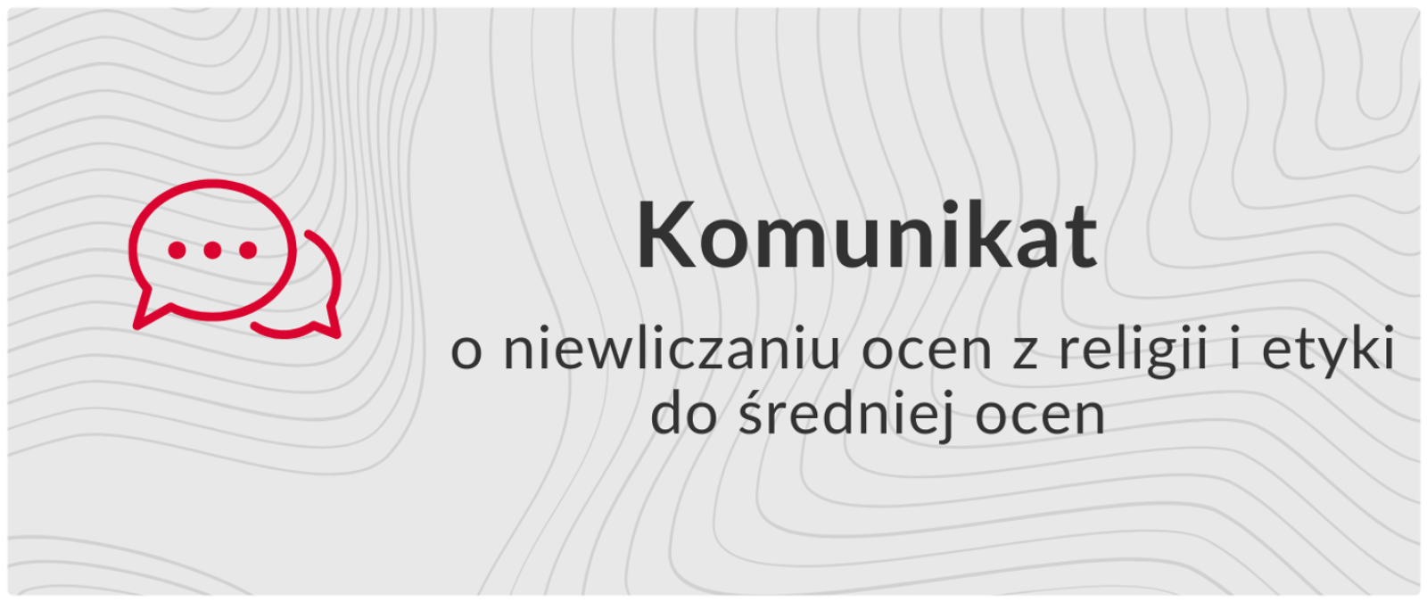 Ministerstwo Edukacji Narodowej przypomina, że zgodnie z rozporządzeniem Ministra Edukacji z dnia 22 marca 2024 r. zmieniającym rozporządzenie w sprawie oceniania, klasyfikowania i promowania uczniów i słuchaczy w szkołach publicznych (Dz. U. poz. 438) od roku szkolnego 2024/2025 oceny klasyfikacyjne z religii i etyki nie są wliczane do średniej rocznych i końcowych ocen klasyfikacyjnych.