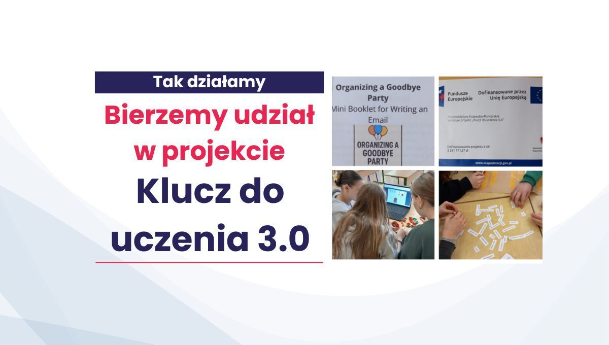 Zajęcia przeprowadzane w ramach unijnego programu „Klucz do uczenia 3.0” pomogły uczniom poszerzyć kompetencje osobiste i organizacyjne dzięki planowaniu oraz organizacji pracy, monitorowaniu własnych postępów, aktywnym wykorzystaniu posiadanej wiedzy poprzez rozwijanie krytycznego myślenia, znajdowanie rozwiązań, adaptację wcześniej nabytych umiejętności do różnych sytuacji językowych w praktycznym życiu. Również nauczyciele języka angielskiego zostali objęci szeroko rozumianym wsparciem w postaci indywidualnych konsultacji, organizowanych spotkaniach sieci współpracy i wzajemnego uczenia się, stworzonej z myślą o wymianie pomysłów na atrakcyjne sposoby nauczania, a także wdrażanie dobrych praktyk.