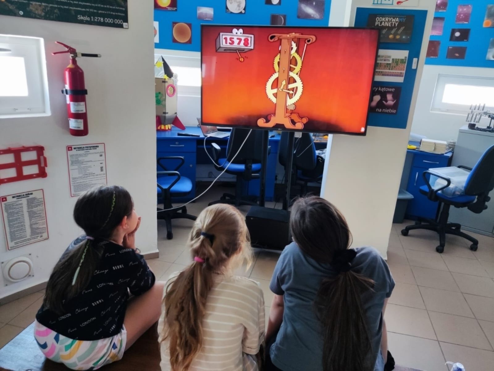 • Dzieci oglądające bajkę na telewizorze