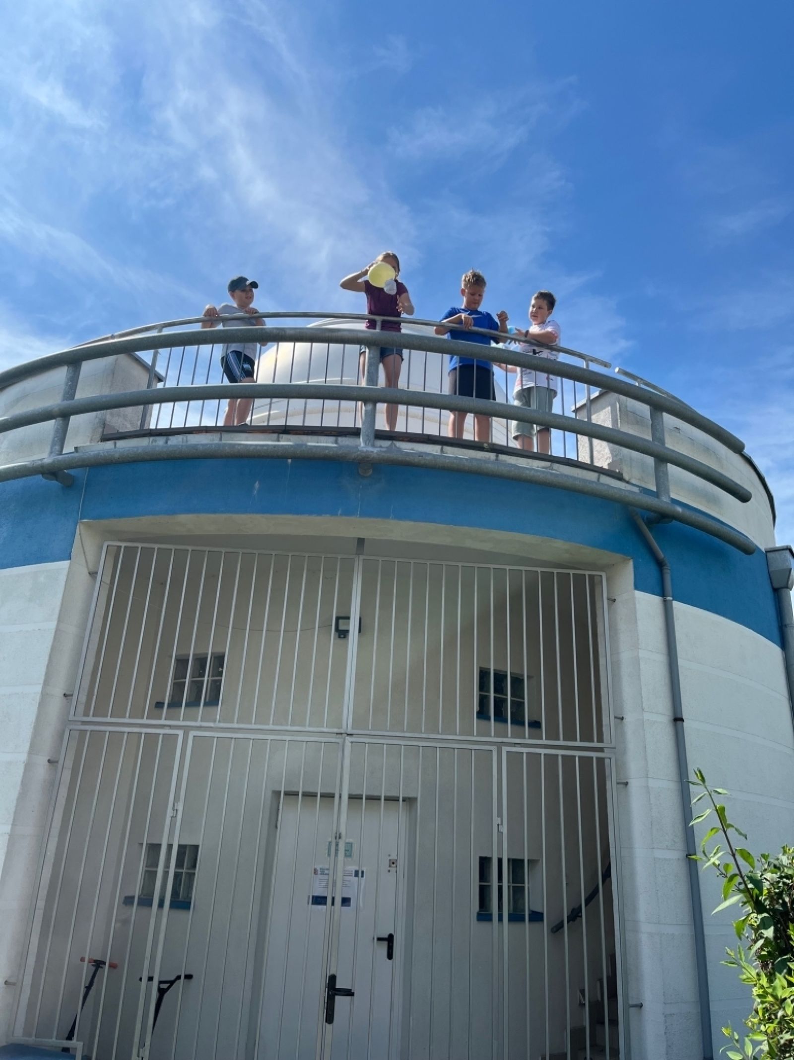 • Dzieci stojące na balkonie astrobazy